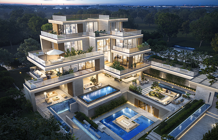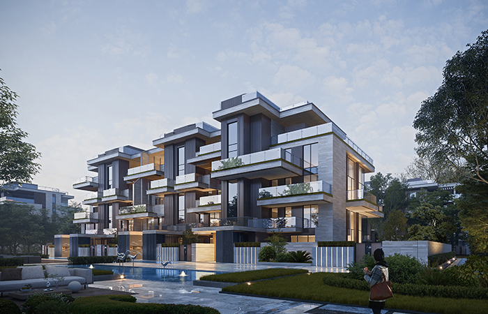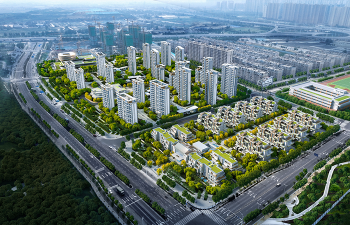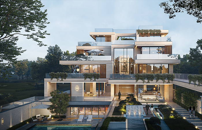 项目致力于与自然环境和谐共生,追求高度的内涵审美、特殊的空间氛围营造和新颖的视觉符号传达,以太平河及卧虎山城市级景观资源为依托,以东方美学为引领,倾力打造低密度百年住宅典范。同时创新性置入4 大设计专利,首创“首层架空-室外会客厅”和“自然采光-阳光车库”,通过架空、挑空、下沉、露台等塑造,赋予住区更为丰富的空间层次感和自然融入度,着力营造诗意栖居的创新空间场景,镌刻人居文明的新标杆。